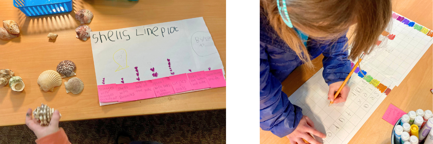 After this, it’s time to play around with different ways to display the data they collected. We explore different types of graphs and also leave space for kids to display the information in new ways they create. The goal is to communicate with others the information held within their collection.